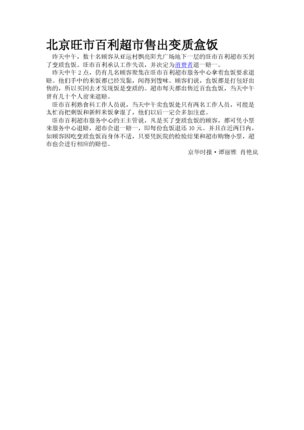 北京旺市百利超市售出變質(zhì)盒飯(17.09KB)