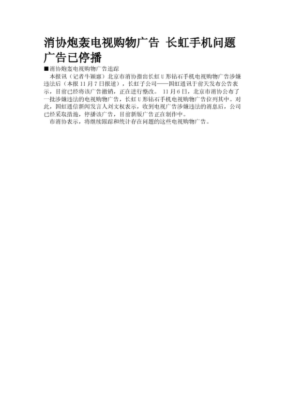 消協(xié)炮轟電視購物廣告 長虹手機問題廣告已停播