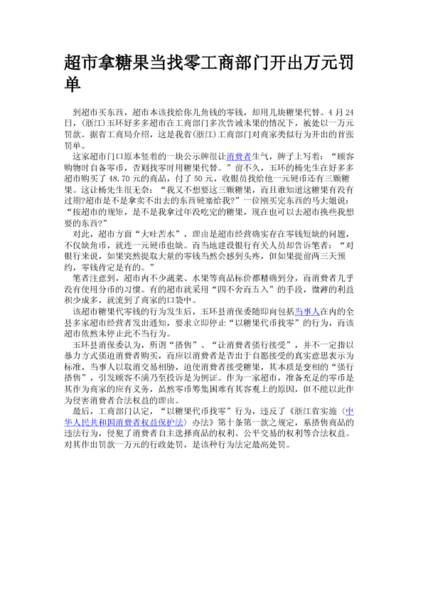 超市拿糖果當找零工商部門開出萬元罰單(19.58KB)