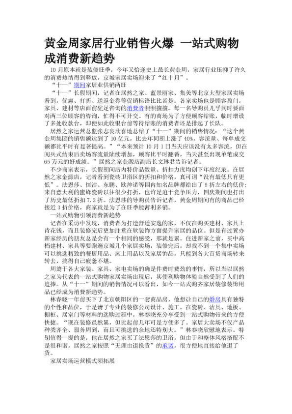 黃金周家居行業(yè)銷售火爆 一站式購物成消費(fèi)新趨勢(22.96KB)