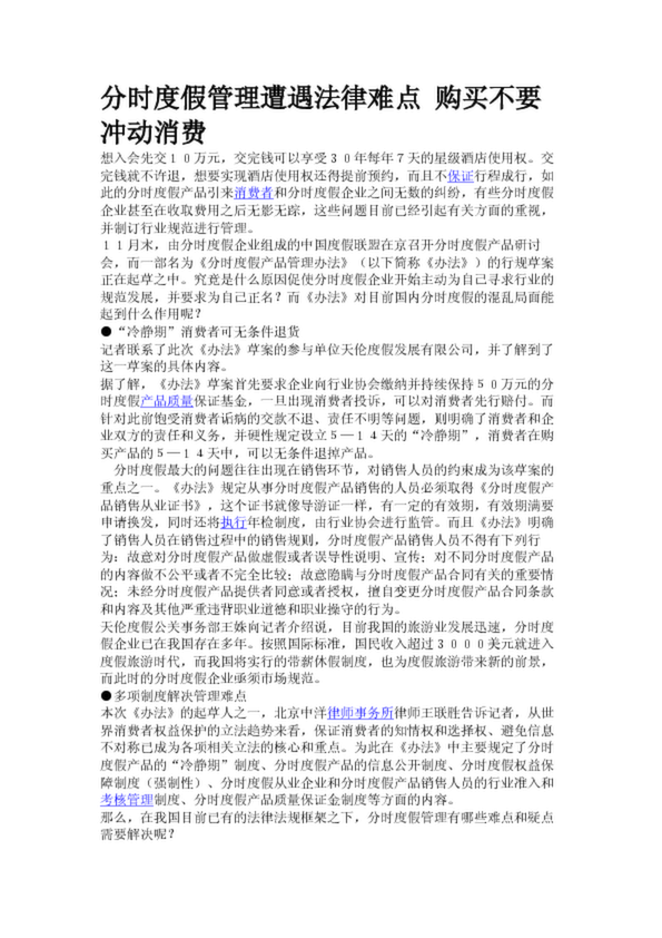 分時(shí)度假管理遭遇法律難點(diǎn) 購買不要沖動(dòng)消費(fèi)