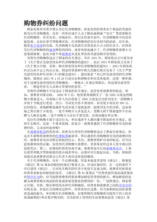 購物券糾紛問題