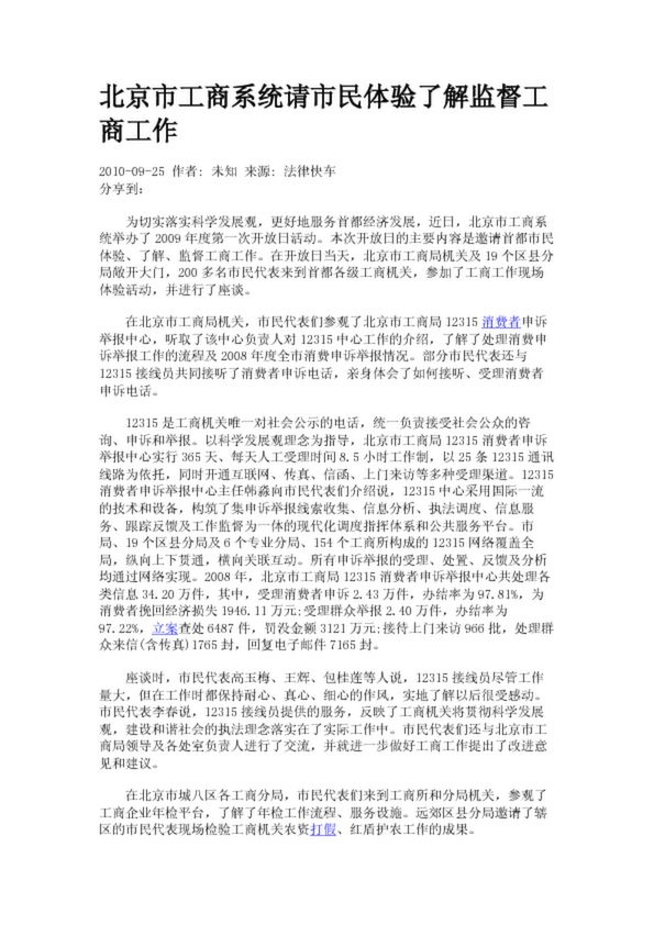 北京市工商系統(tǒng)請市民體驗了解監(jiān)督工商工作