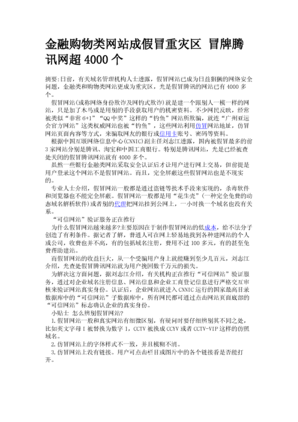 金融購物類網(wǎng)站成假冒重災(zāi)區(qū) 冒牌騰訊網(wǎng)超4000個(gè)