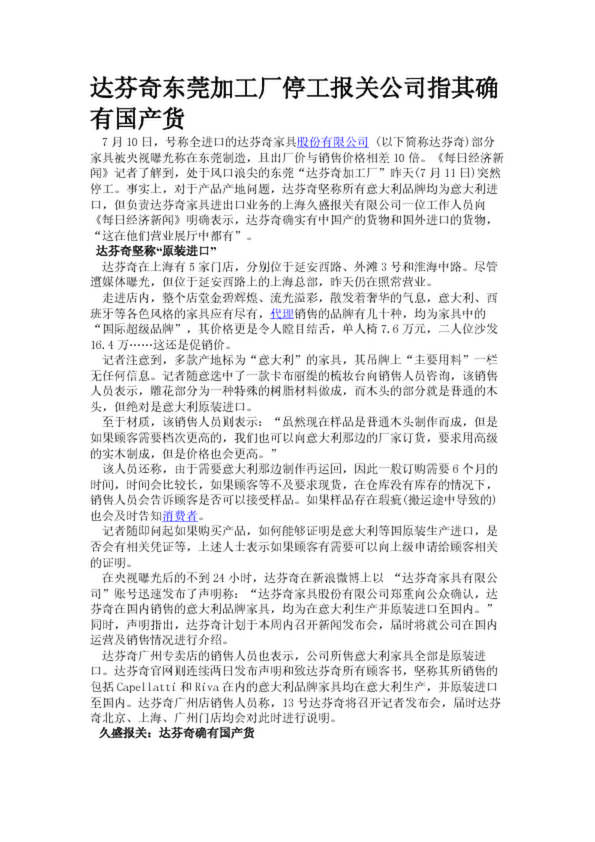 達芬奇東莞加工廠停工報關(guān)公司指其確有國產(chǎn)貨