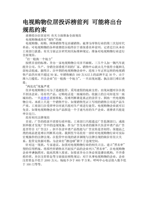 電視購(gòu)物位居投訴榜前列 可能將出臺(tái)規(guī)范約束