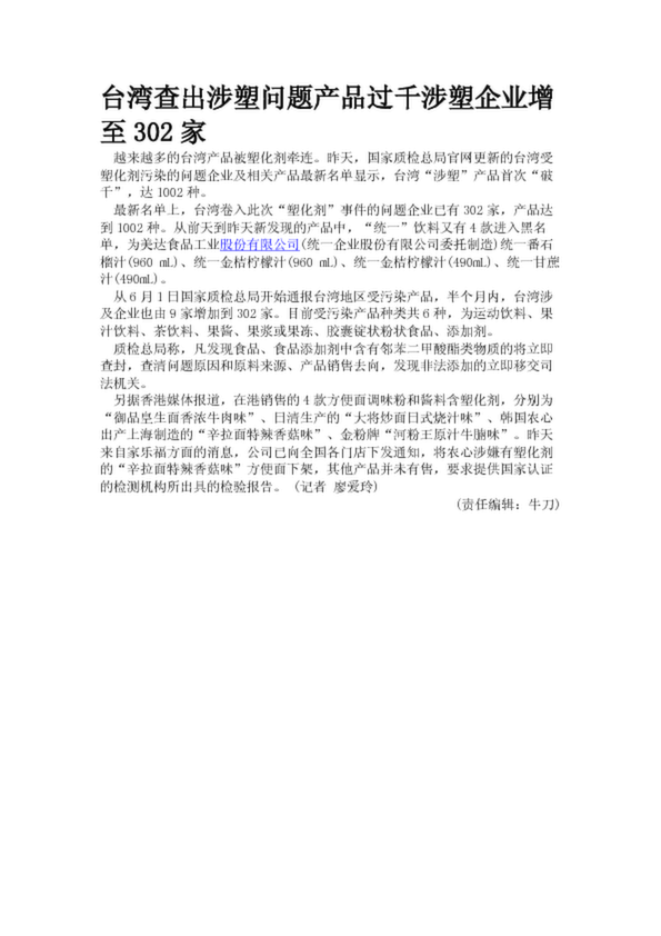 臺灣查出涉塑問題產品過千涉塑企業(yè)增至302家