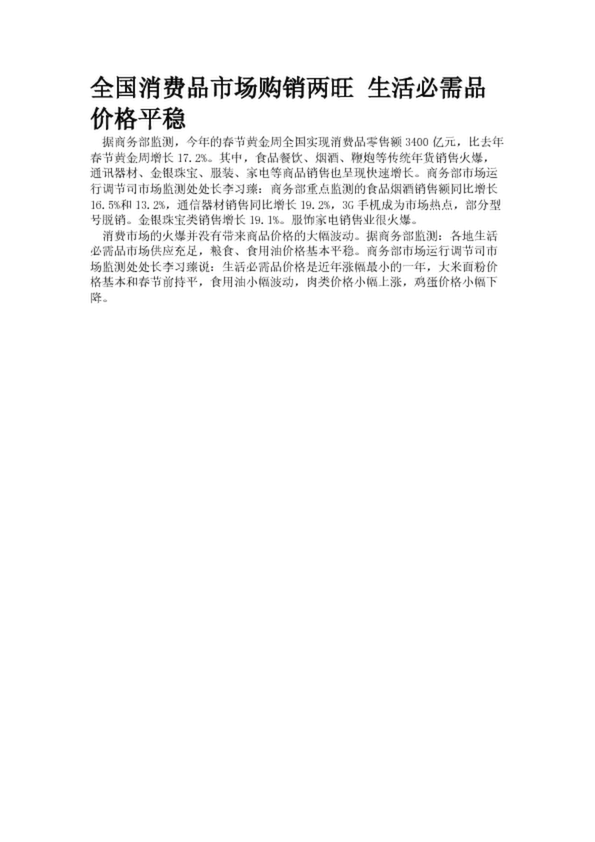 全國消費(fèi)品市場購銷兩旺 生活必需品價格平穩(wěn)