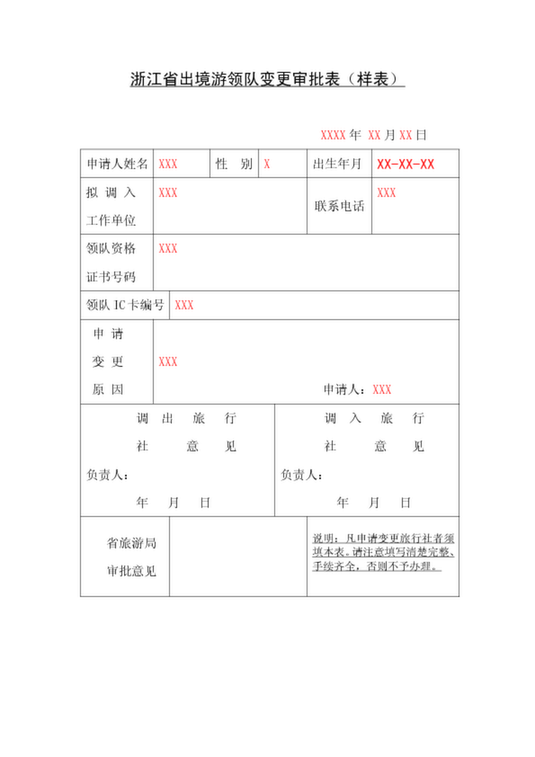 浙江省出境游領(lǐng)隊(duì)變更審批表(樣表)