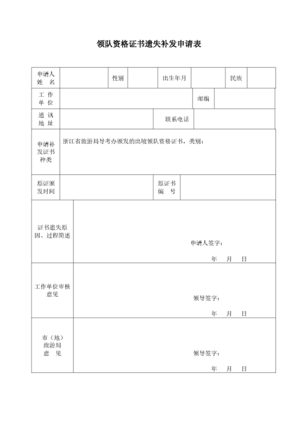 出境領(lǐng)隊證遺失補發(fā)申請表