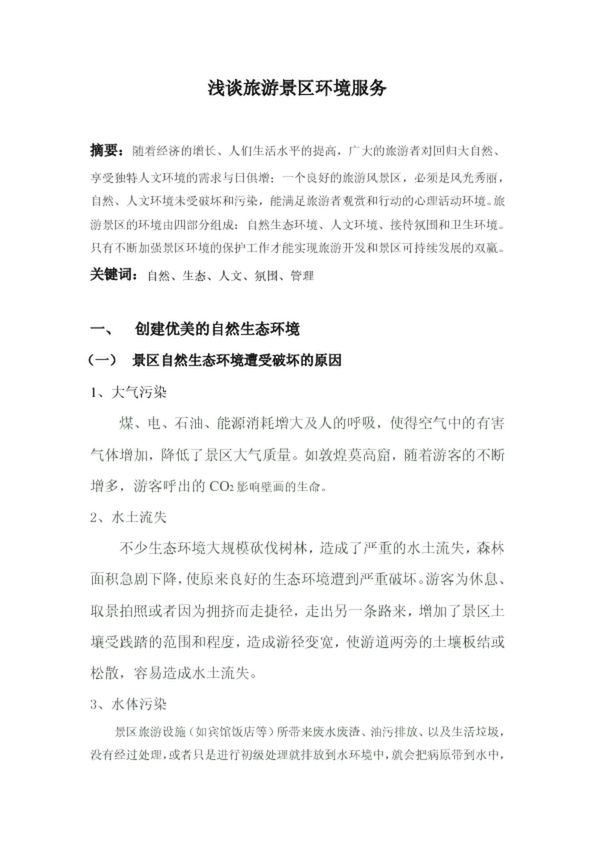 淺談旅游景區(qū)環(huán)境服務(wù)