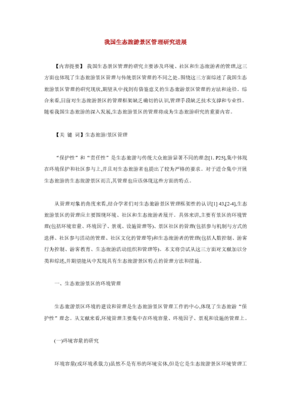 我國(guó)生態(tài)旅游景區(qū)管理研究進(jìn)展
