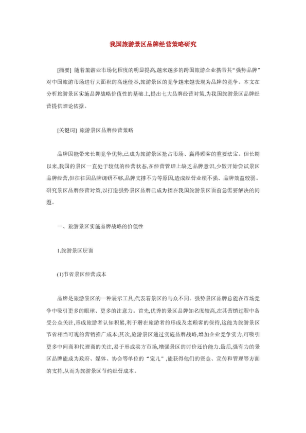 我國旅游景區(qū)品牌經(jīng)營策略研究