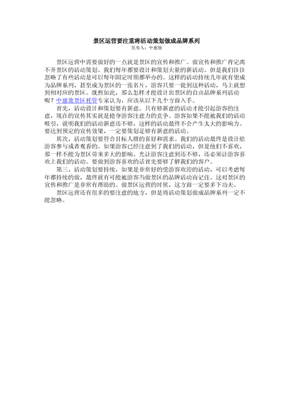 景區(qū)運(yùn)營(yíng)要注重將活動(dòng)策劃做成品牌系列