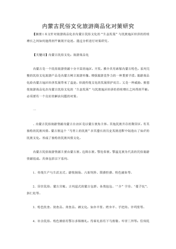 內(nèi)蒙古民俗文化旅游商品化對策研究