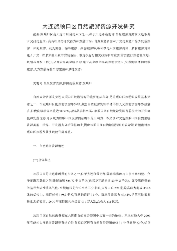 大連旅順口區(qū)自然旅游資源開發(fā)研究