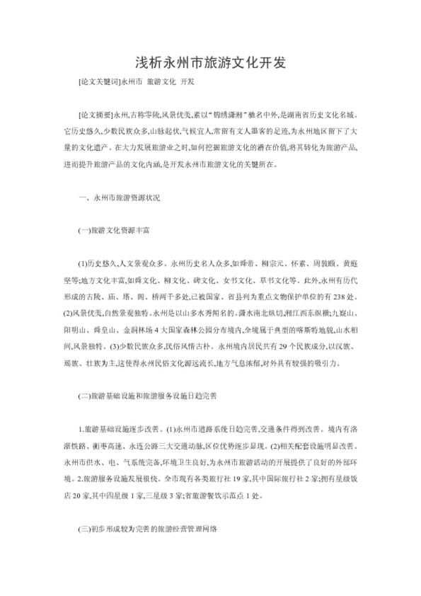 淺析永州市旅游文化開發(fā)
