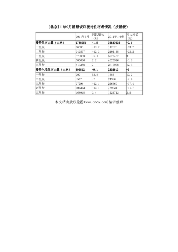 [北京]11年9月星級飯店接待住宿者情況(按星級)