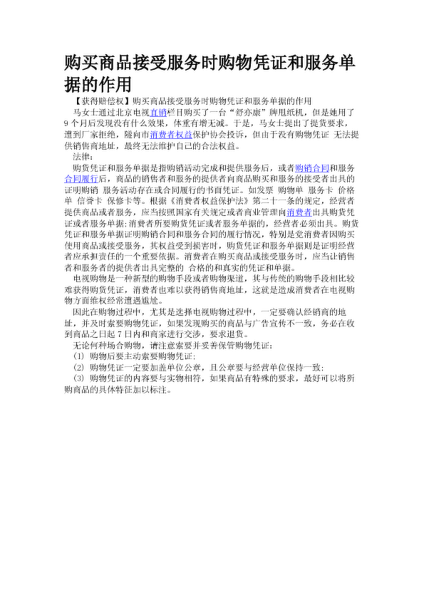 購(gòu)買商品接受服務(wù)時(shí)購(gòu)物憑證和服務(wù)單據(jù)的作用