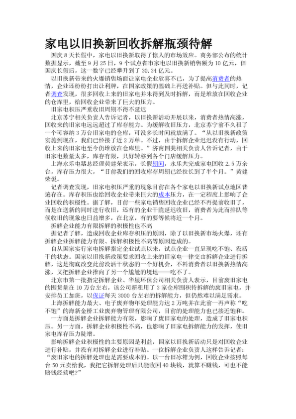 家電以舊換新回收拆解瓶頸待解(28.05KB)